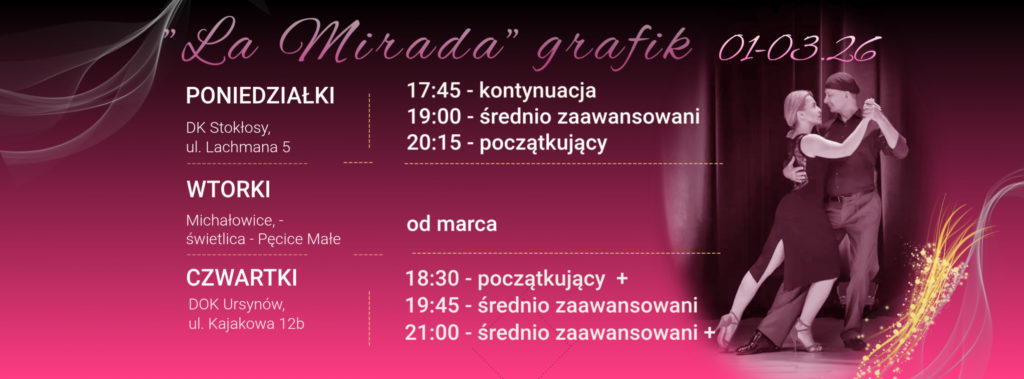 grafik zajęć tanga w szkole „La Mirada” w okresie od stycznia do marca 2026