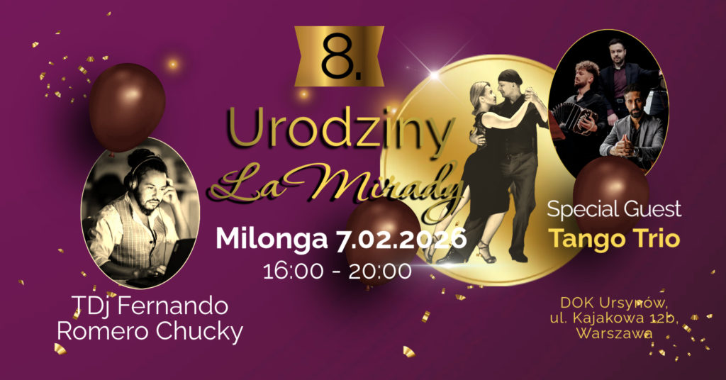 Termin: Sobota, 7.02.2026 godz. 16:00 – zaczynamy jak zawsze lekcją kroku podstawowego godz. 16:30 – 20:00 – milonga z setem muzyki na żywo (później zdążycie na milongi w Centrum :)).